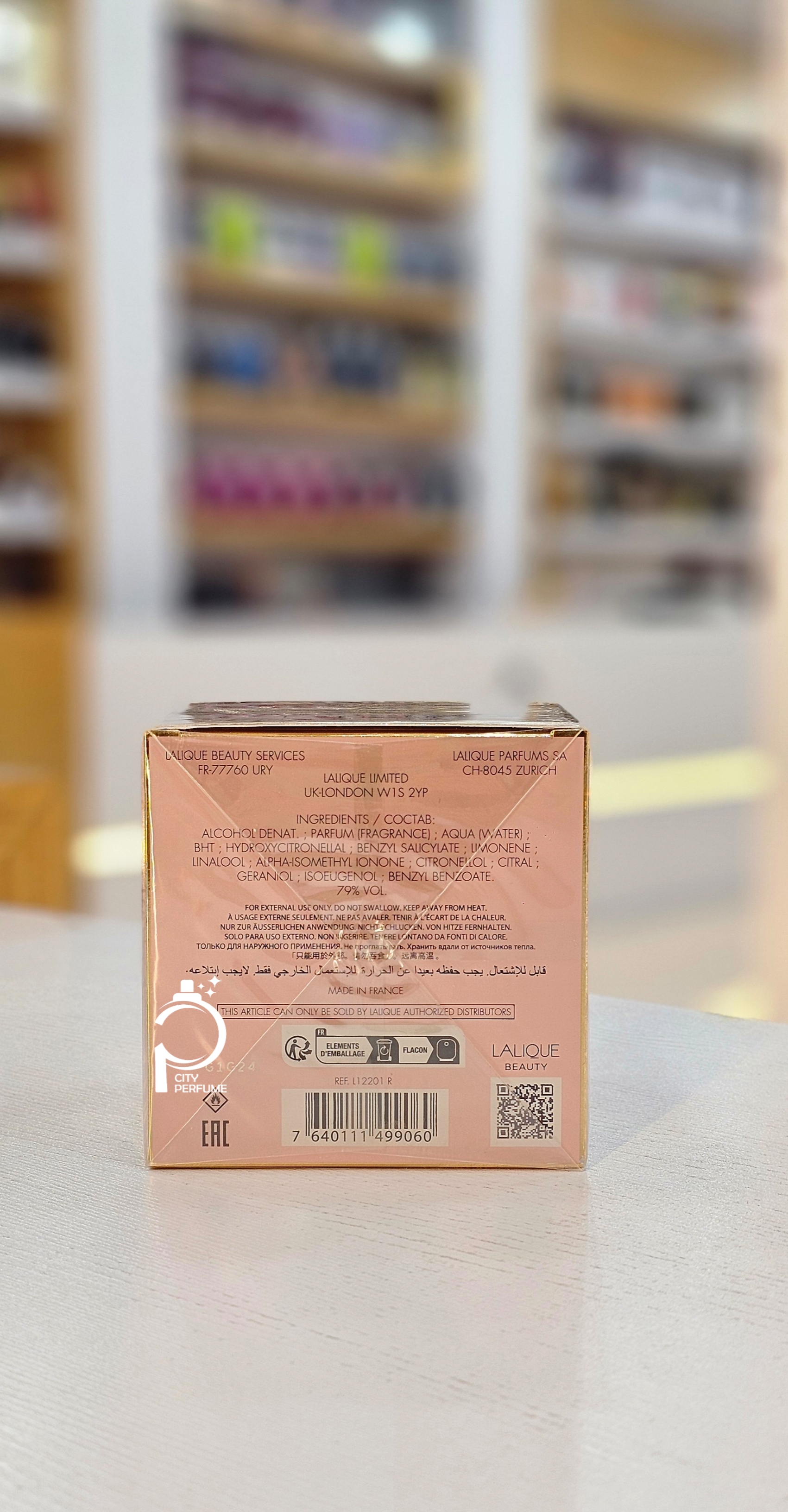 · طراحی بطری (یشکل): برند Lalique ریشه در هنر شیشهگری و کریستالسازی دارد. بطری این عطر نیز مانند یک اثر هنری، جلوهای از سادگی و شکوه را به نمایش میگذارد و میتواند جلوه ویژهای در قفسه عطرهای شما داشته باشد .
